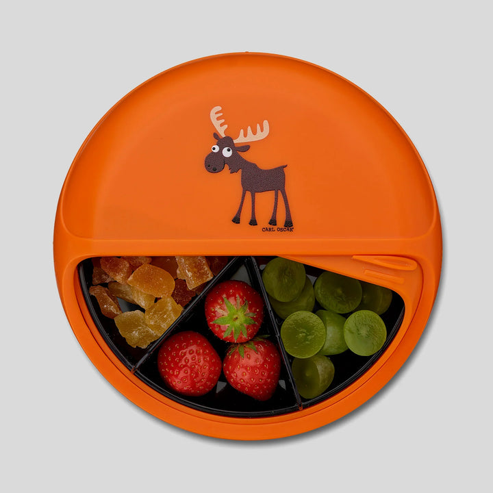Lunch box for on the go. Rotate your snack food! A better way to pack healthy snacks - so reuse, reduce and save! Pack a waste-free snack meal with berries, nuts or other dry foods. Both save space and keep the snacks fresh and prevent them from getting crushed. Simply rotate the disc and turn the meal into a food adventure for you and your child. A must have for daycare, school, trips, car rides, taking the kids shopping or a picnic. It has five rotating compartments and the food disc can be easily removed and placed on the picnic blanket or table. The lunch box comes in two different sizes, bentodisc (18cm) or snackdisc (15cm).