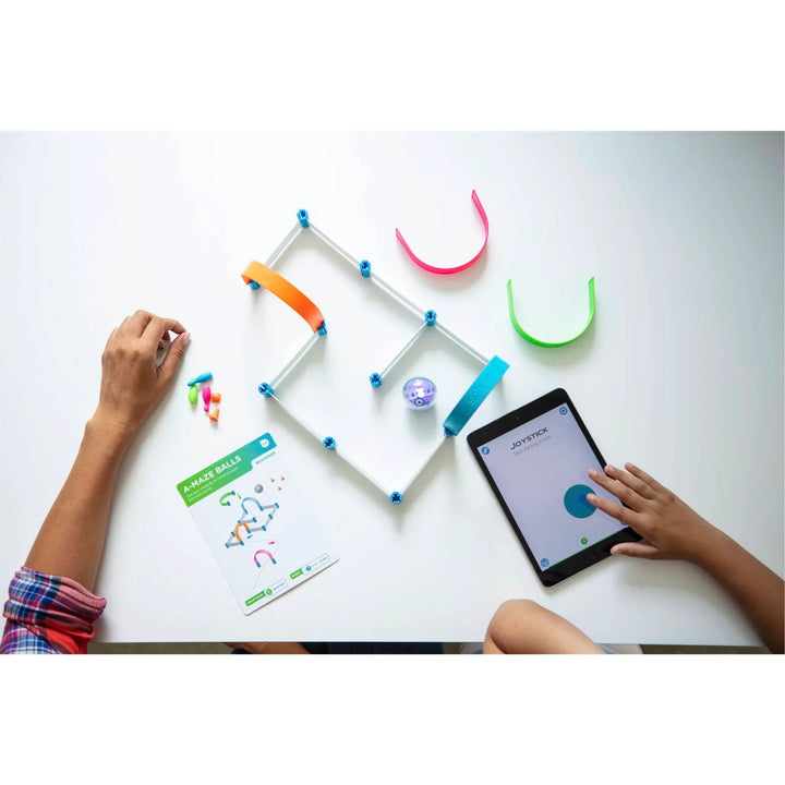 The activity kit contains small traffic cones, bowling pins and other components to build various courses and obstacles for the Spehro Mini. The activity cards included always provide new inspiration for learning through play with the little robot.